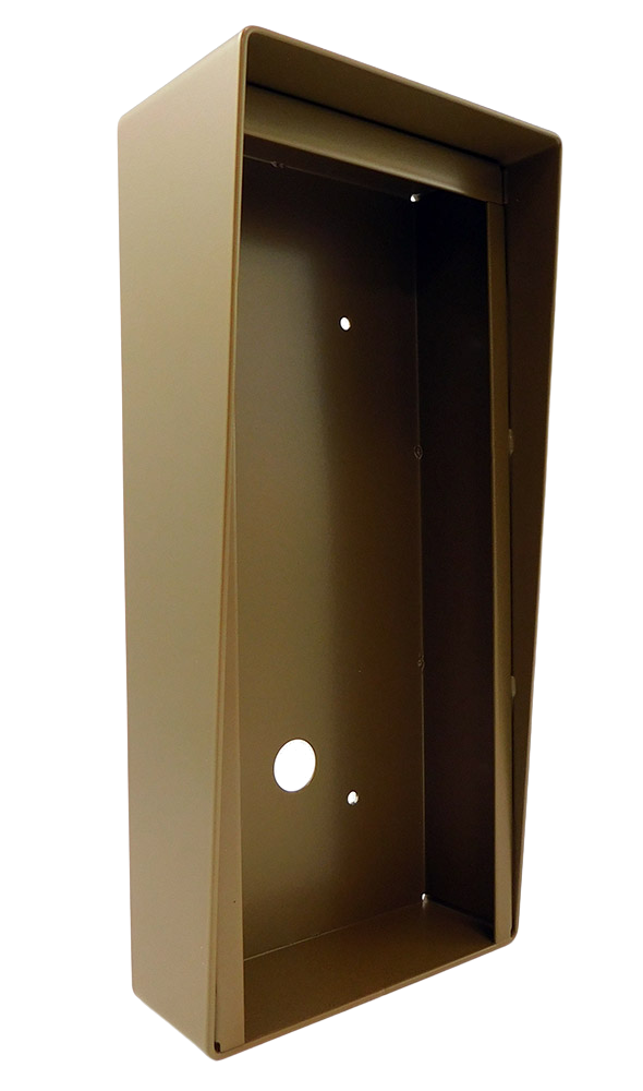 Een opbouwbak/behuizing voor de RENO video intercom in antraciet/zilver of goudkleurig