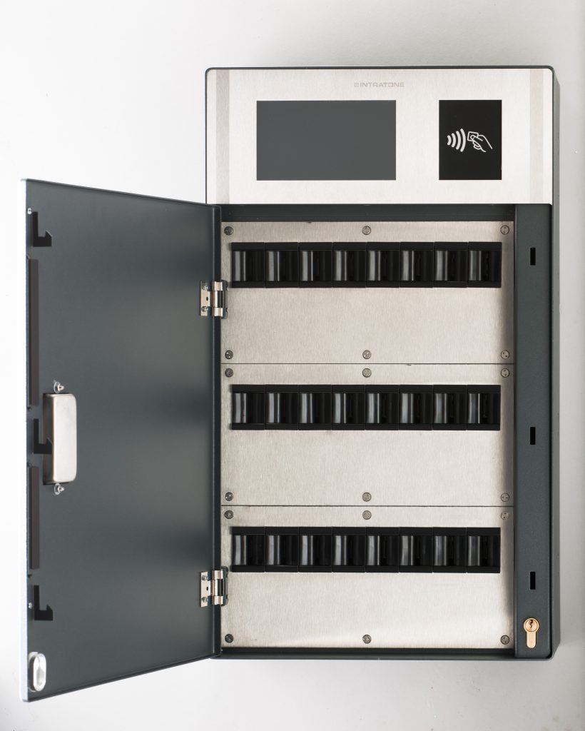 Houd sleutels beheersbaar en veilig – zelfs in grote aantallen – met het digitale sleutelkastsysteem van Intratone met touchscreen en proximitylezer. Deze intelligente digiatle sleutelkluis heeft een capaciteit van maximaal 24 elektronische sleutelhangers, die eenvoudig, veilig & snel kunnen worden georganiseerd via de Intratone online beheertool.