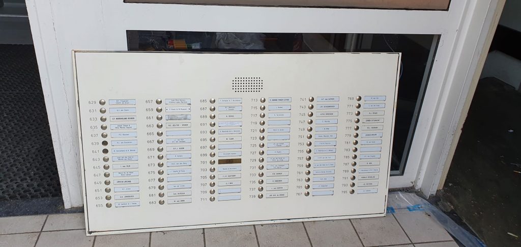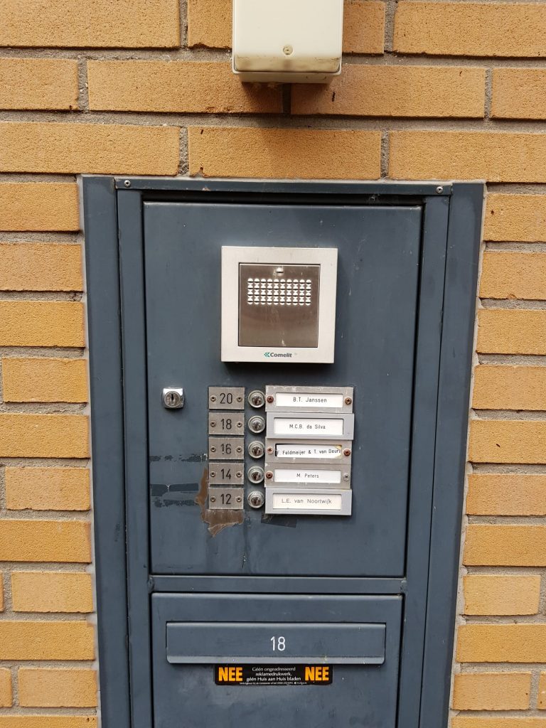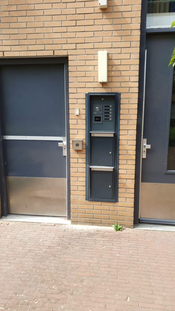 Aan de andere kant van het gebouw zijn er een 2-tal DINA Create’s geplaatst. Deze zijn keurig binnen de postkasten verwerkt. De DINA Create is de custom made oplossing voor dit soort toegangen. Een ander paneel had hier niet direct gepast.