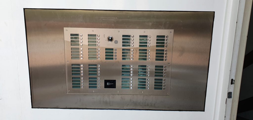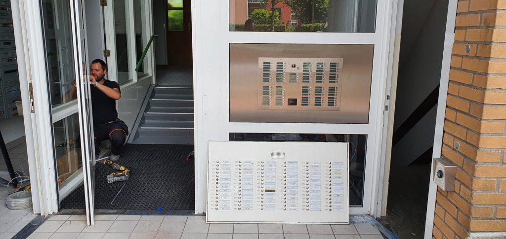 Op een locatie midden in Utrecht is installatie bedrijf Sauer bezig geweest met een 3 dubbele installatie. Deze bestaat uit het installeren van een op maat gemaakt DINA paneel voor 82 woningen. Hierbij is er voor de bewoners tevens een paslezer geinstalleerd om het mogelijk te maken om voor bewoners met een badge makkelijk en eenvoudig toegang te geven.